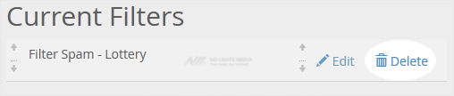 3. Under Current Filters are displayed all existing filters. Click Delete next to the appropriate one.