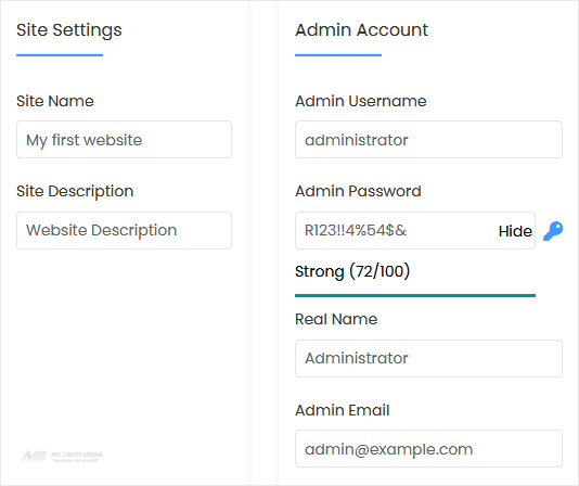 • Admin Username: Your new Serendipity username (for security reasons, do not use the administrator or the admin username).