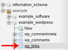4. Select the appropriate table you want to delete. If you're going to delete table "wp_links", choose it.