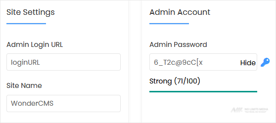 - Site Name: Enter the name of your website, such as WonderCMS.